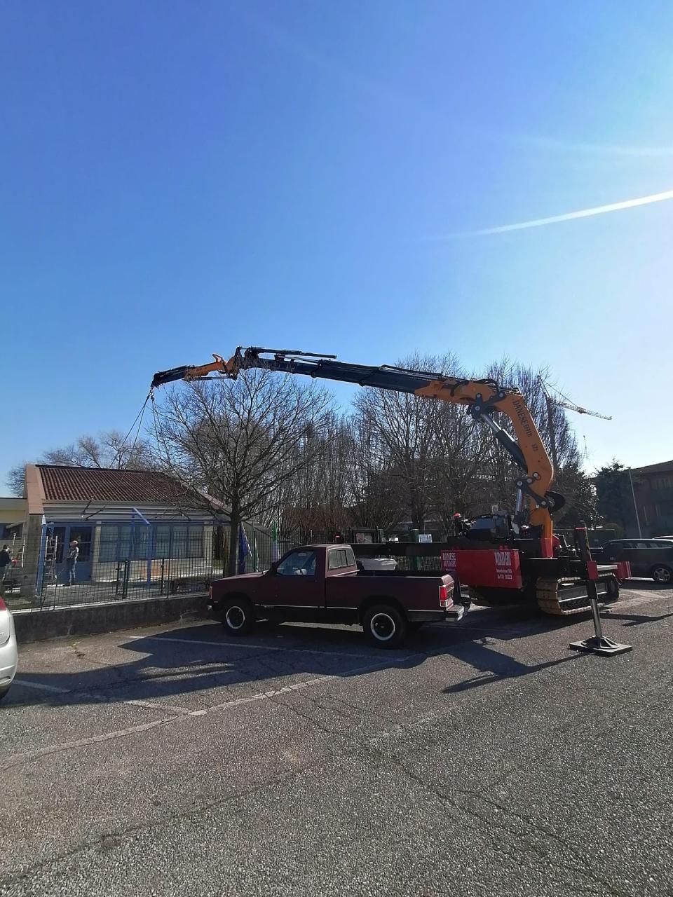 Disponiamo del modello Effer cingolata, cioè una struttura ultra compatta, con un'altezza massima di 35 metri e una larghezza di 1.85 metri. La gru cingolata viene allestita con piattaforma e verricello.